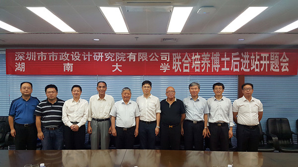 2017年7月29日下午,公司與湖南大學(xué)聯(lián)合培養(yǎng)博士后進(jìn)站開題會(huì)在市政設(shè)計(jì)大廈三樓會(huì)議室舉行。中國(guó)工程院陳政清院士,全國(guó)工程勘察設(shè)計(jì)大師王用中、車宇琳,湖南大學(xué)華旭剛教授,東南大學(xué)宗周紅教授,地鐵集團(tuán)陳湘生總工程師,深圳市人社局周寬山科長(zhǎng)以及我公司董事長(zhǎng)陳宜言設(shè)計(jì)大師等相關(guān)領(lǐng)導(dǎo)、專家參加會(huì)議。