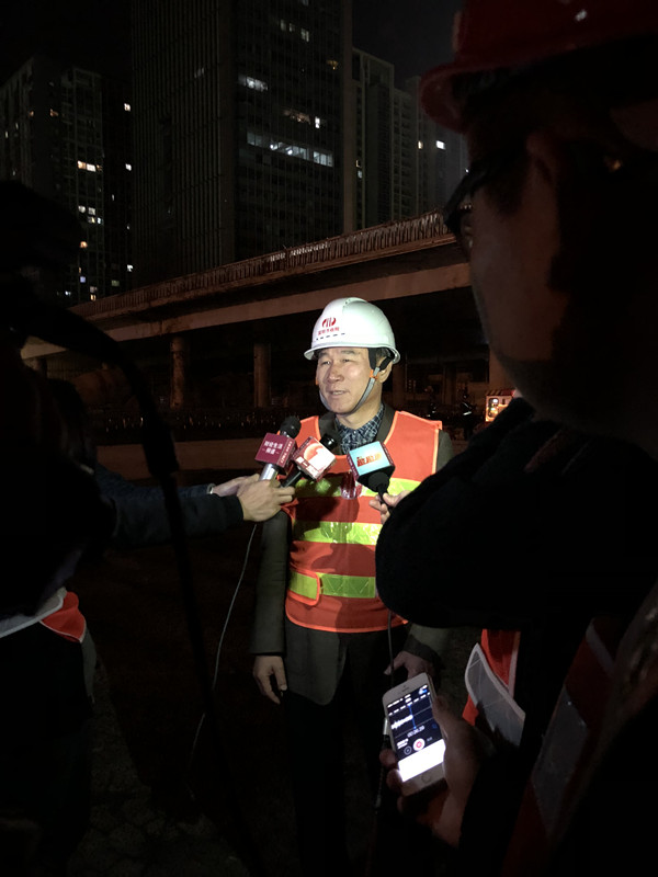 施工單位提前完成橋面設(shè)施拆除、鉆孔、設(shè)備安裝等準備工作后,2017年12月29日晚11點開始拆橋工作,至2018年1月2日凌晨4點深南大道南北兩側(cè)交替封道4晚,彩田橋中間4跨連續(xù)梁采用SPMT模塊車順利拆除。拆除橋梁長度約200m,共切割成22段梁體,單個梁體最大重量達300t,是目前國內(nèi)首座采用SPMT模塊車快速拆除的預(yù)應(yīng)力混凝土連續(xù)梁橋。全橋拆除時間與建設(shè)福田樞紐時60天拆除益田橋相比,時間僅為其1/6,我公司的技術(shù)創(chuàng)新充分證明了“深圳速度”,而且為橋梁工程的發(fā)展增添了寶貴經(jīng)驗。
