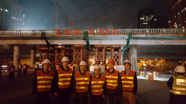 以市委領(lǐng)導(dǎo)、軌道辦及地鐵集團提出的要求及目標為前提,經(jīng)過現(xiàn)場考察、仔細研究以及結(jié)合SPMT模塊車快速架設(shè)彩田鋼便橋的成功經(jīng)驗,在充分考慮周邊居住環(huán)境及交通環(huán)境的需要等因素條件下,我公司董事長陳宜言設(shè)計大師提出采用SPMT模塊車拆除方案,充分利用SPMT模塊車在較短時間內(nèi)移動橋梁的技術(shù)能力,大大減少了對交通的干擾、交通恢復(fù)時間,提高了工地安全,降低了環(huán)境影響,提高了施工能力。該方案得到了各級領(lǐng)導(dǎo)的肯定。隨后,我公司做了大量的工作,包括結(jié)構(gòu)的安全計算,結(jié)構(gòu)物的臨時加固以及報請地鐵集團增加《拆除彩田立交橋?qū)n}報告》等工作,并得到地鐵集團的認可。