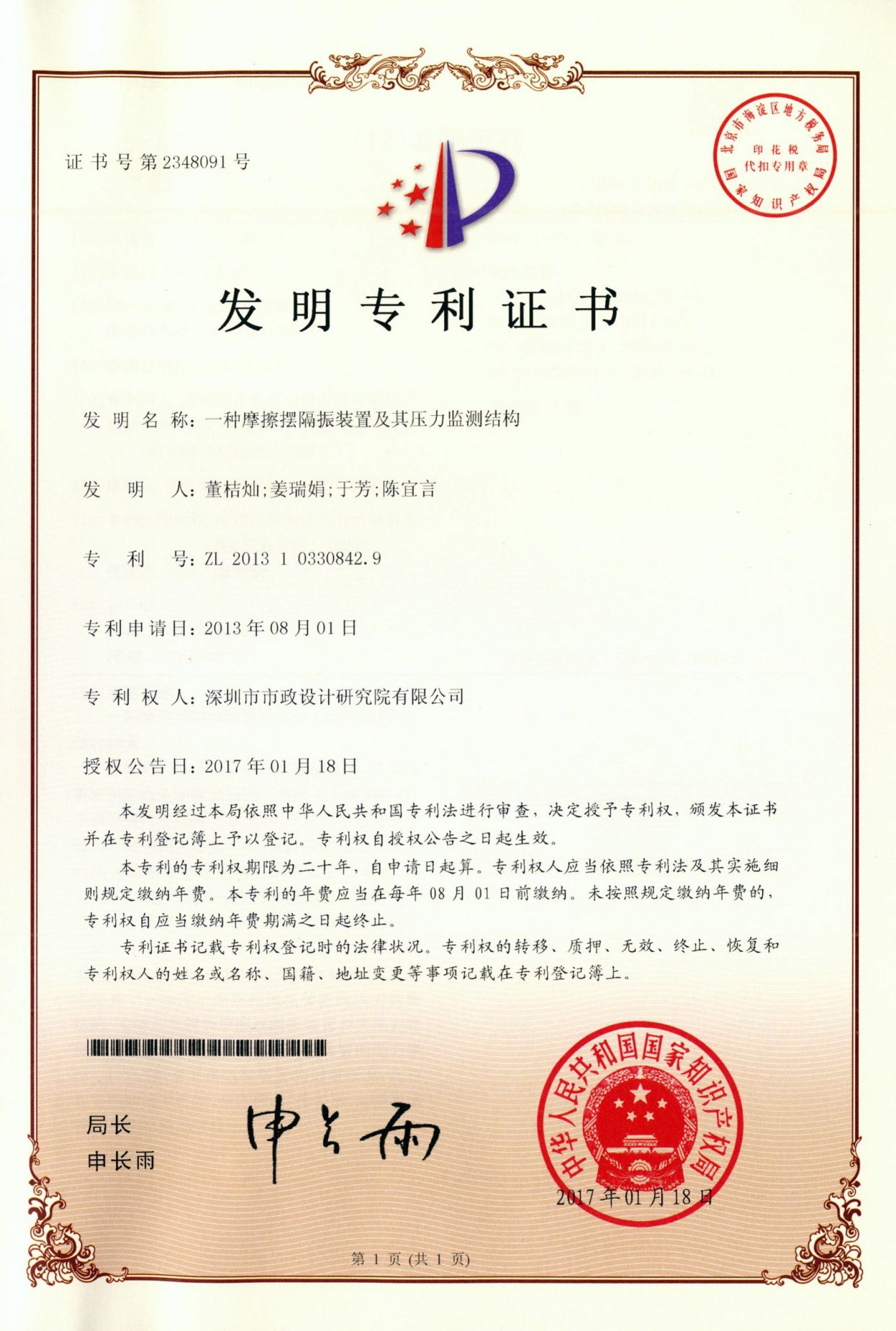 一種摩擦擺隔振裝置及其壓力監(jiān)測(cè)結(jié)構(gòu)